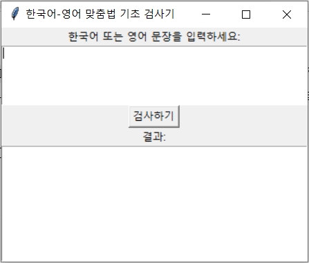 root.title("한국어-영어 맞춤법 기초 검사기")