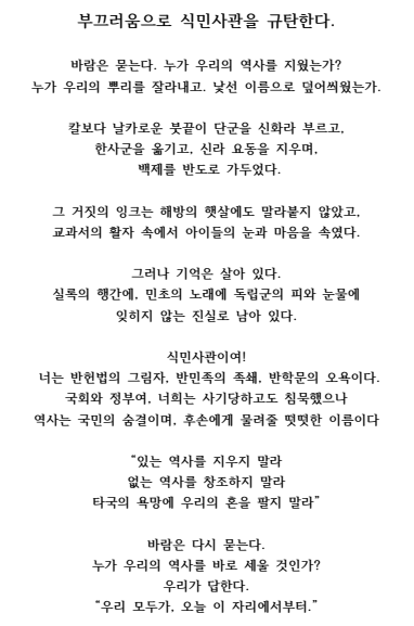 “있는 역사를 지우지 말고, 없는 역사를 만들지 말라.”